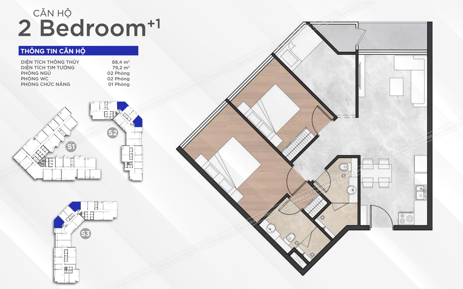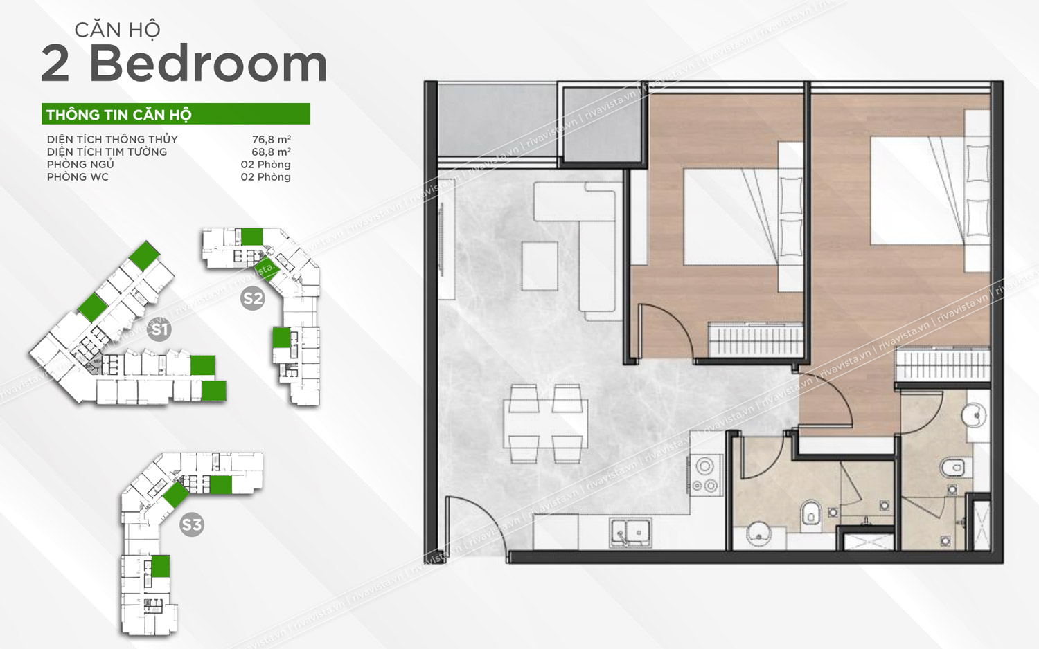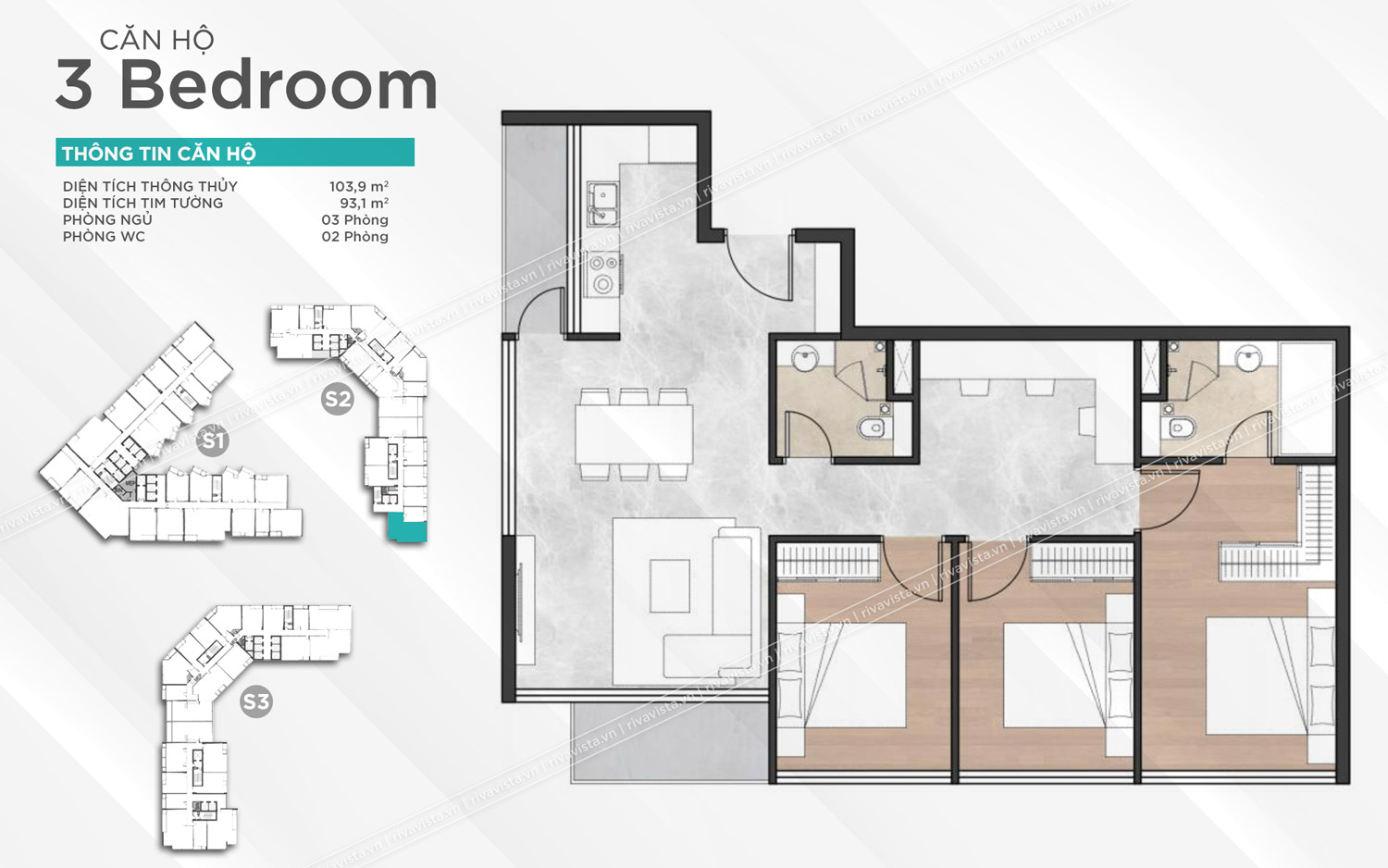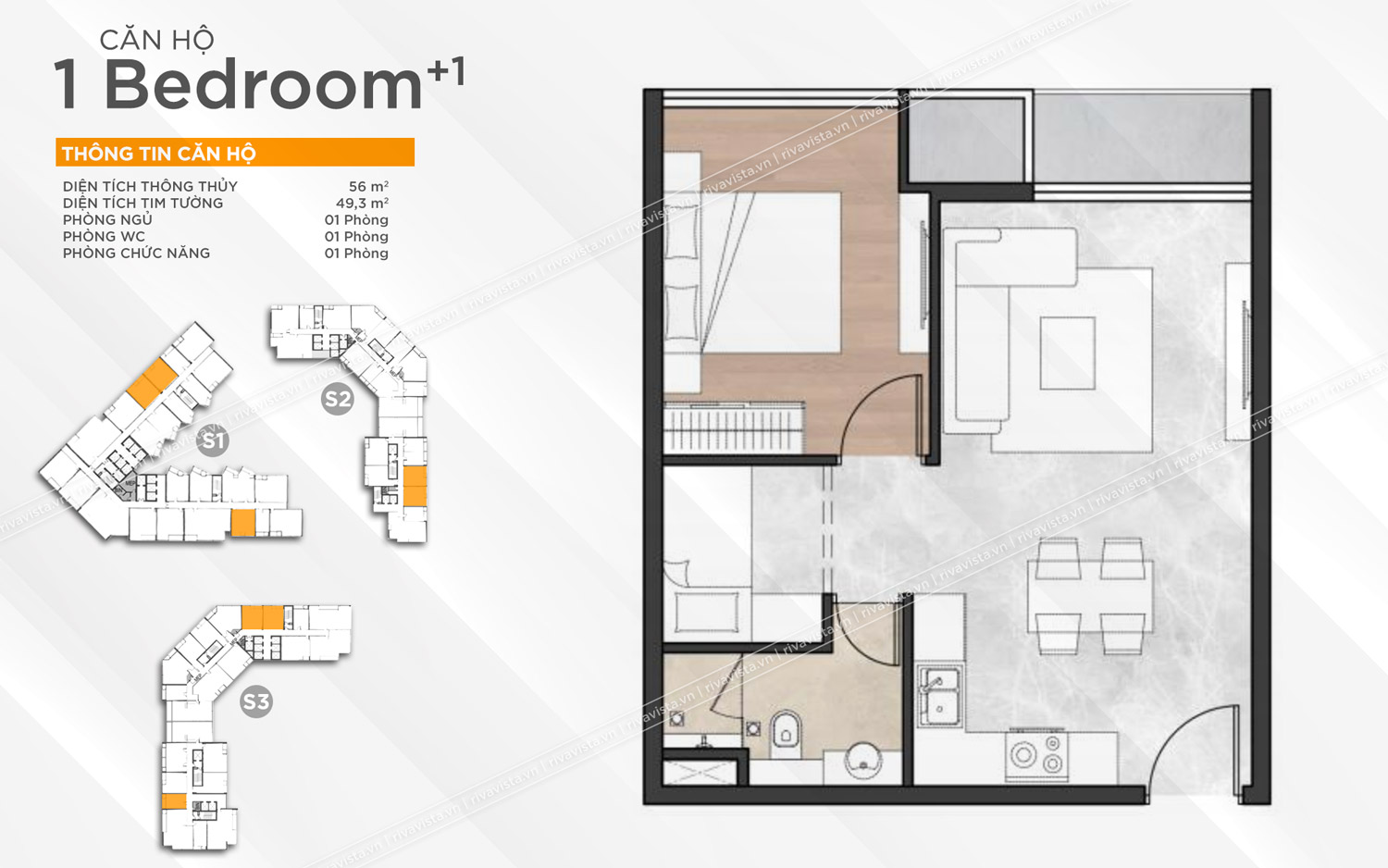 Diện tích: 35,8 – 49,3 – 68,8 – 93,1m2